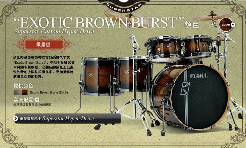 • 力量,多樣性,可見性。演奏TAMA的Hyper-Driver套鼓,觀眾不僅可以聽到你演奏的每一個音符,還可以看見你演奏的每一個動作。